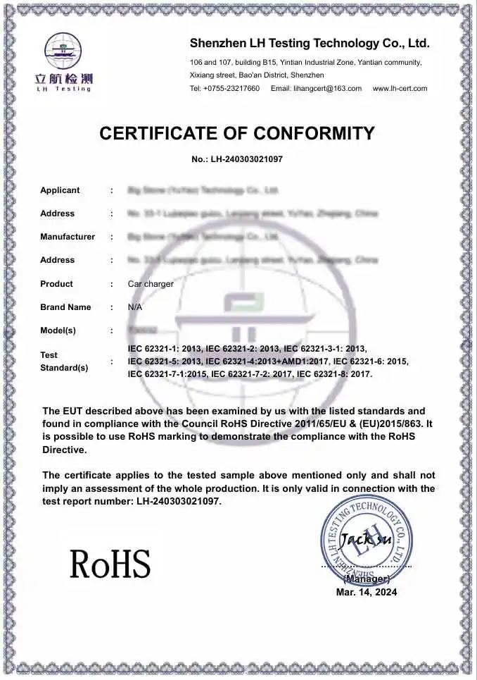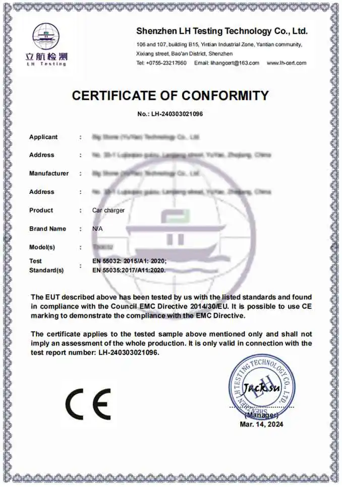 A: Sebagai pabrik profesional, produk kami sepenuhnya mematuhi standar keselamatan dan lingkungan internasional. Kami menyediakan produk bersertifikat CE dan RoHS. Selain itu, fasilitas produksi kami bersertifikasi BSCI dan ISO, memastikan Adaptor Pengisi Daya Mobil kami memenuhi standar teknis dan etika ketat yang disyaratkan oleh merek global premium.