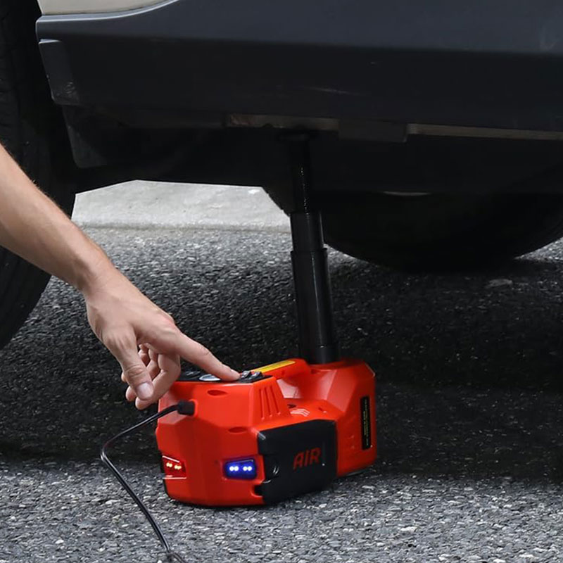 Tidak seperti dongkrak serba guna, kit ini mengintegrasikan pengangkatan, pemompaan, pelepasan mur, dan penerangan—menghilangkan kebutuhan akan perkakas terpisah. Lampu LED depan menerangi area kerja, sedangkan lampu berkedip belakang memperingatkan lalu lintas yang datang.