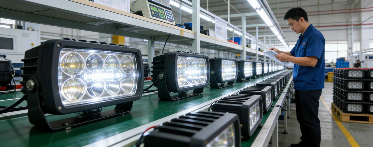 Di Far East Manufacturing, kualitas adalah prioritas utama kami. Setiap batch produksi menjalani pengujian yang ketat, termasuk verifikasi peringkat IP tahan air, uji ketahanan getaran, dan pemeriksaan stabilitas fluks cahaya. Setiap lampu kerja LED diperiksa untuk memastikan keakuratan dimensi dan konsistensi material sebelum pengiriman internasional.