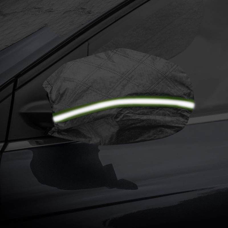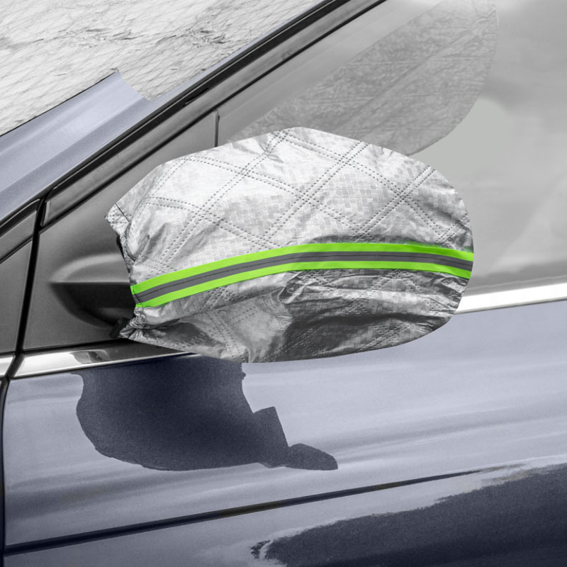 Fitur Keamanan untuk Penutup Mobil Tahan Salju: Kantong cermin memiliki strip reflektif yang membuat mobil Anda lebih mudah dilihat dalam cuaca gelap atau bersalju, sehingga mengurangi risiko di tempat parkir.
